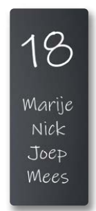 Wat onze antracietkleurige naamborden bijzonder maakt, is de toepassing van witte UV-print voor de tekst. Deze techniek zorgt voor een helder, stijlvol contrast op het matte oppervlak. Het resultaat is een elegante en moderne look die perfect aansluit bij een eigentijdse entree. Voor een strakke afwerking zijn aan de achterzijde twee metalen nokjes gelast, waardoor het bord onzichtbaar en zwevend aan de muur bevestigd wordt. Zo ontstaat een naambord dat niet alleen functioneel is, maar ook een exclusieve en verfijnde uitstraling heeft.
