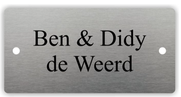 Voor de woning is een duurzaam en stijlvol naambord van roestvrij staal (RVS) geplaatst bij de voordeur. Het bord is diep gegraveerd, wat zorgt voor een hoogwaardige en slijtvaste afwerking.. De gravure is uitgevoerd idoor uw gekozen tekstkleur voor goede leesbaarheid.