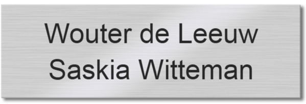 RVS naamplaatje voor brievenbus, zelfklevend of met gaatjes voor schroeven. Duurzaam, roestvrij staal, weerbestendig. Eenvoudig te monteren. Geschikt voor binnen en buiten. Professionele uitstraling in verschillende lettertypes.