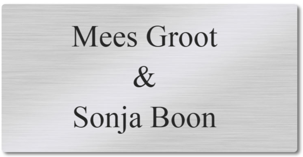 RVS naamplaatje voor brievenbus, zelfklevend of met gaatjes voor schroeven. Duurzaam, roestvrij staal, weerbestendig. Eenvoudig te monteren. Geschikt voor binnen en buiten. Professionele uitstraling.