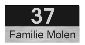 Naambordje voordeur Roest vrij staal met cijfer in balk.