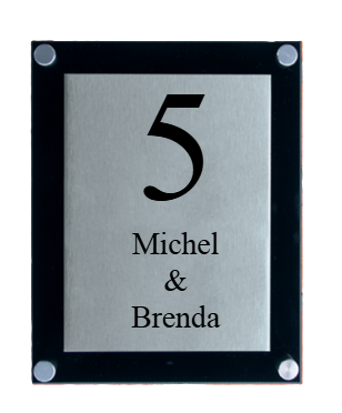 Elegant RVS naambord gecombineerd met zwarte perspex achterplaat. Tijdloos design, hoge kwaliteit. Geschikt voor buitengebruik. Bestand tegen weersinvloeden. Personaliseerbaar met naam en huisnummer. Een professionele uitstraling voor elke gevel.