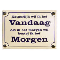 Emaille tekst bordje natuurlijk wil ik vandaag als ik het morgen wil bestel ik het morgen