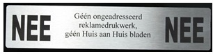 Mooi rvs bord voor ongeadresseerde reklame maar wel huis bladen.