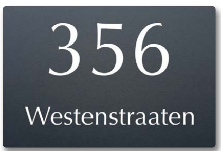 Wat onze antracietkleurige naamborden bijzonder maakt, is de toepassing van witte UV-print voor de tekst. Deze techniek zorgt voor een helder, stijlvol contrast op het matte oppervlak. Het resultaat is een elegante en moderne look die perfect aansluit bij een eigentijdse entree. Voor een strakke afwerking zijn aan de achterzijde twee metalen nokjes gelast, waardoor het bord onzichtbaar en zwevend aan de muur bevestigd wordt. Zo ontstaat een naambord dat niet alleen functioneel is, maar ook een exclusieve en verfijnde uitstraling heeft.