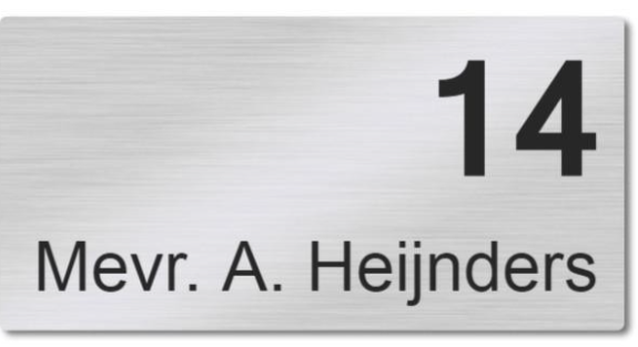 Onze rvs naamborden worden gelaserd in het zwart. U heeft keuze uit verschillende lettertypen en indelingen.Hieronder besteld u eenvoudig uw eigen rvs naambord in de afmeting 16 x 9 cm.